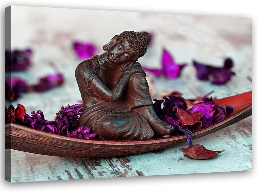 Feeby Bilder Buddha Blumen Lila XXL 120x80 cm 1Teilig Modern Wohnzimmer Schlafzimmer Flur Büro Vlies