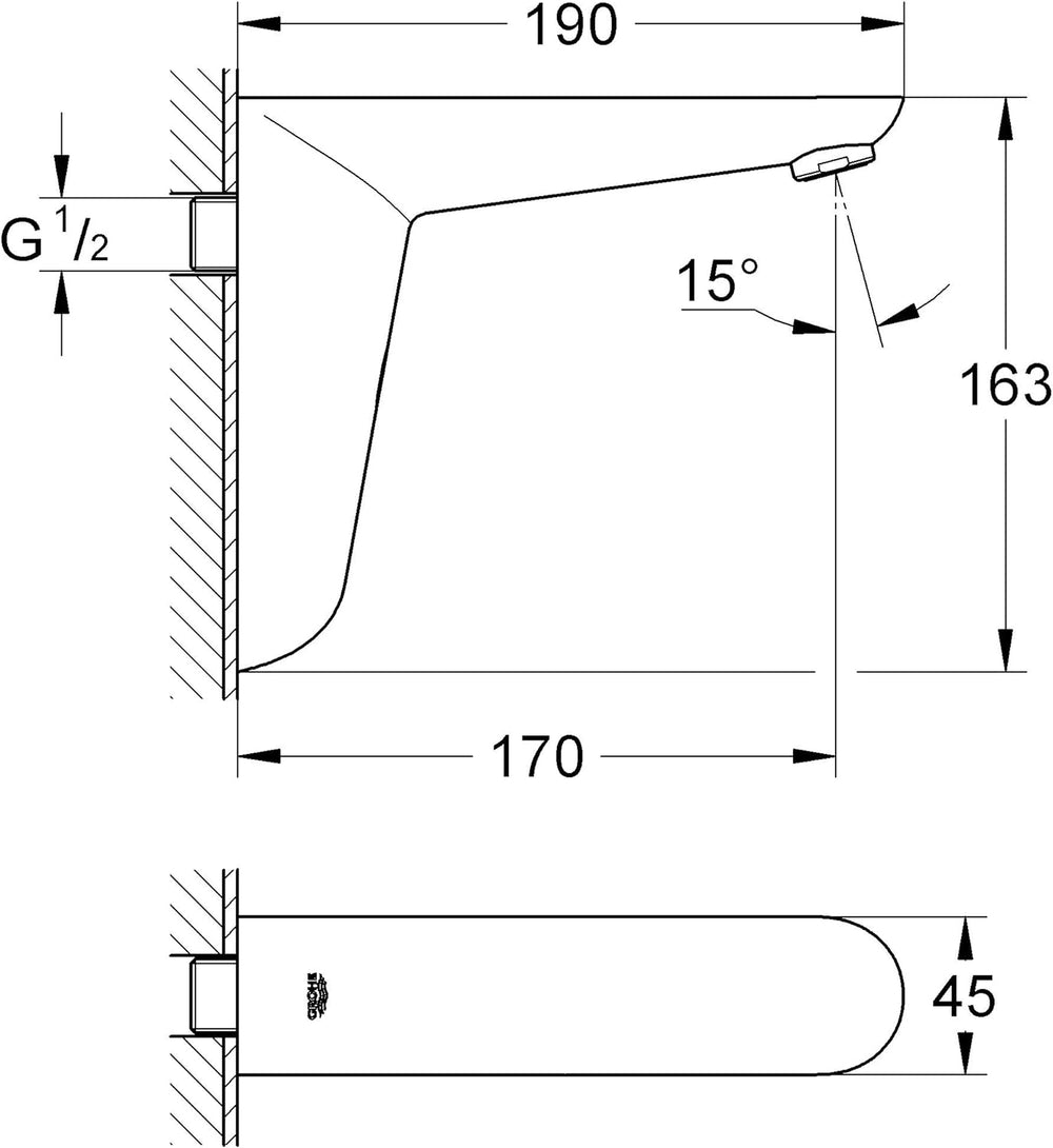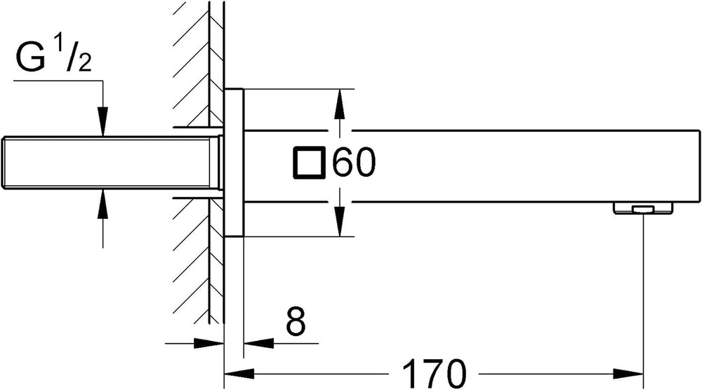 GROHE Eurocube Badarmaturen (Wanneneinlauf, Wandmontage) chrom, 13303000, Silber Badewannenauslauf,