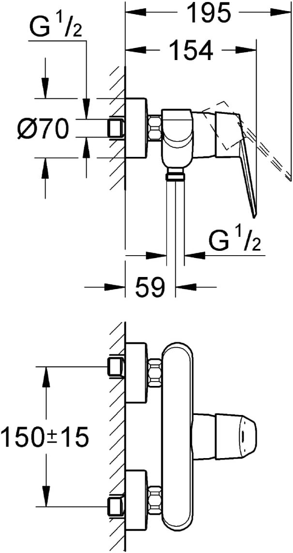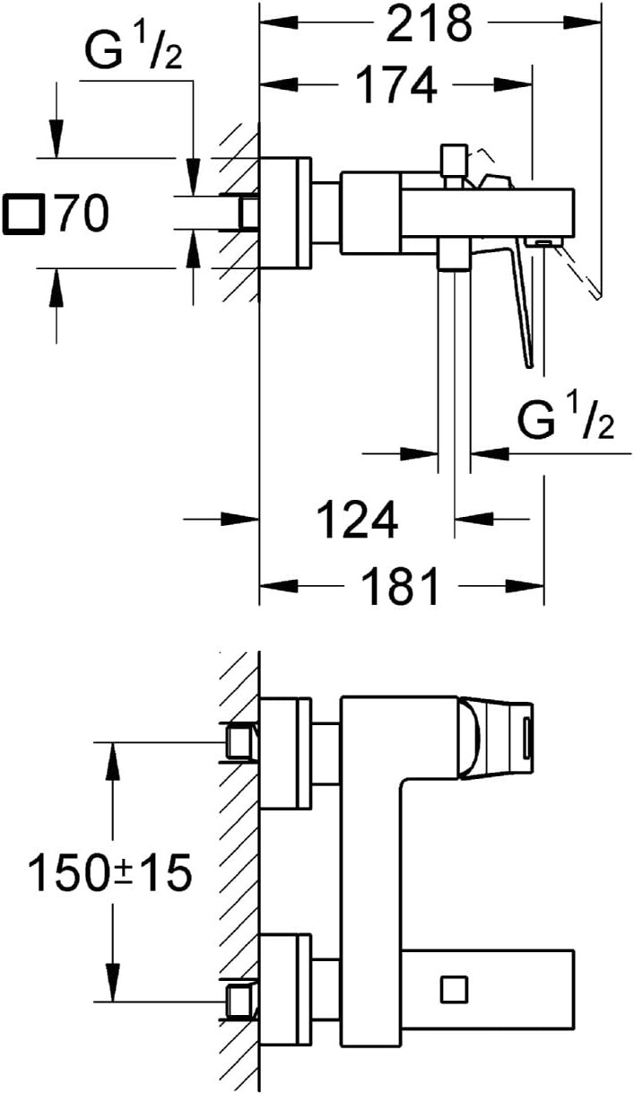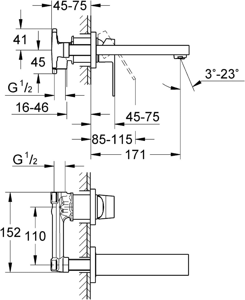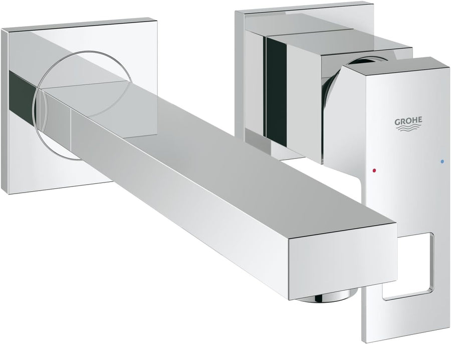 GROHE Eurocube - 2-Loch-Waschtischarmatur (für die Wandmontage, Bedienungshebel aus Metall, verstell