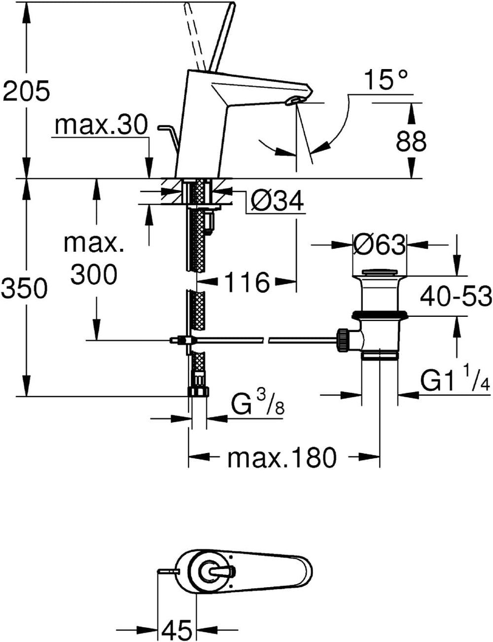 GROHE Eurocube Einhand-Waschtischbatterie, mit Energieparfunktion 2339000E, Silber Small Ablaufgarni