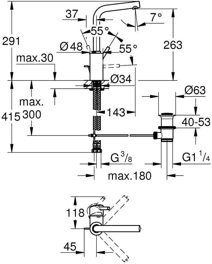 GROHE Eurocube - Einhand-Spültischbatterie (Einlochmontage, Schwenkbereich 90°, langlebige Oberfläch