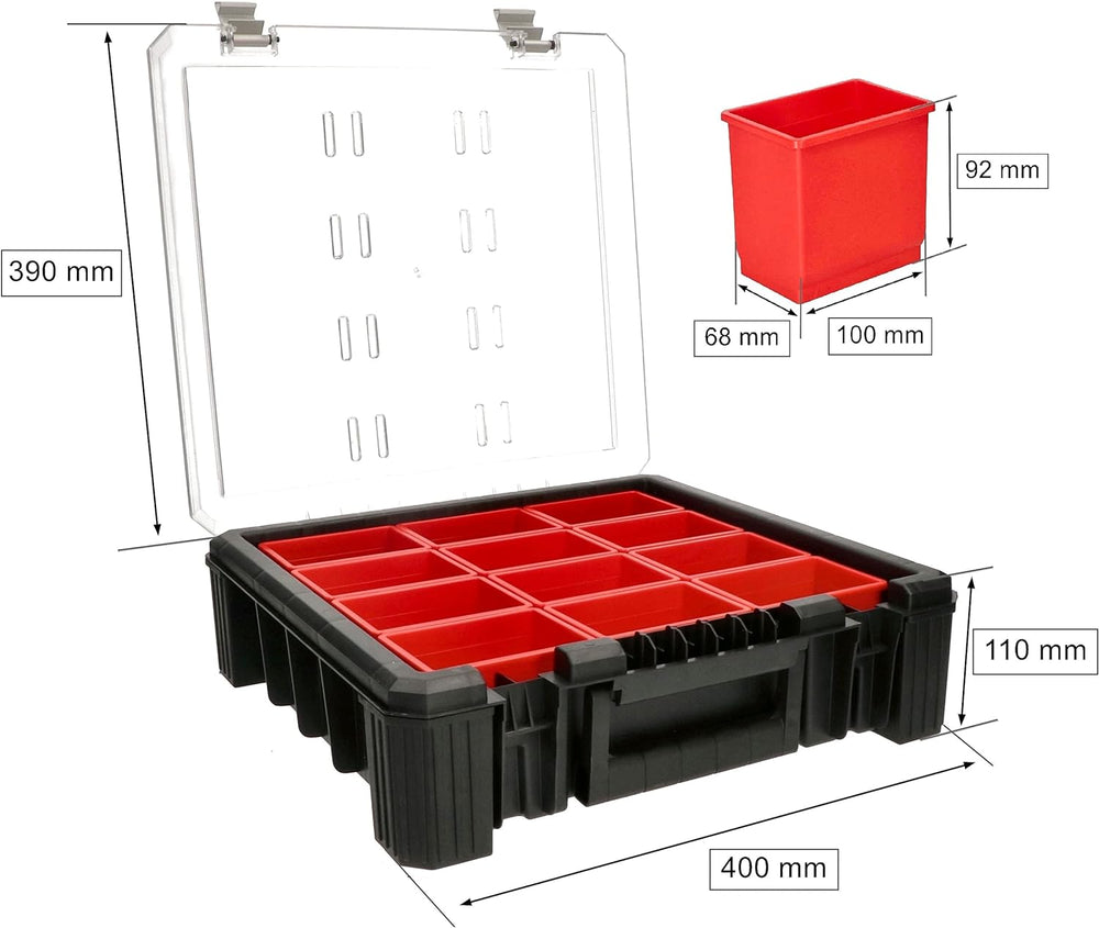 KOTARBAU® Tragbarer Sortimentskasten WRC 39x40x11 cm Aufbewahrungsbox mit Kammern aus Polycarbonat H