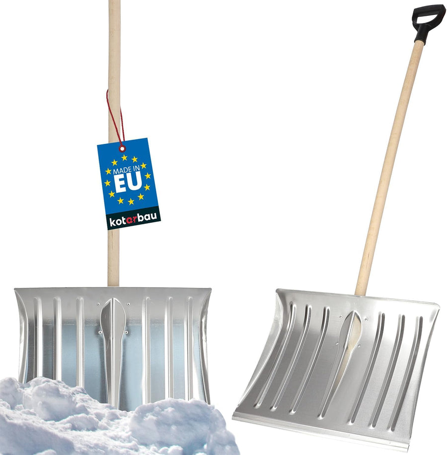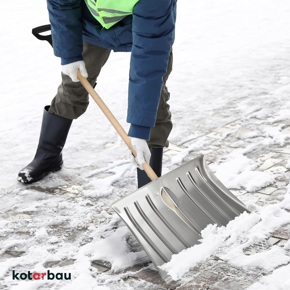 KOTARBAU® Schneeschaufel Schneeschieber 50cm mit Holzstiel Verstärkt Aluminium Schild mit Ergonomisc
