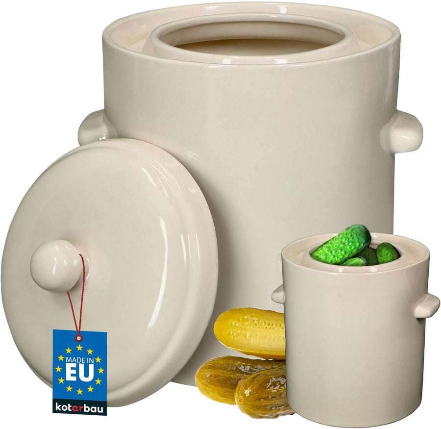 KOTARBAU® Sauerkraut Gärtopf Sauerkrauttopf 5L Tontopf mit Deckel Steinguttopf Fermentieren Dauerkra