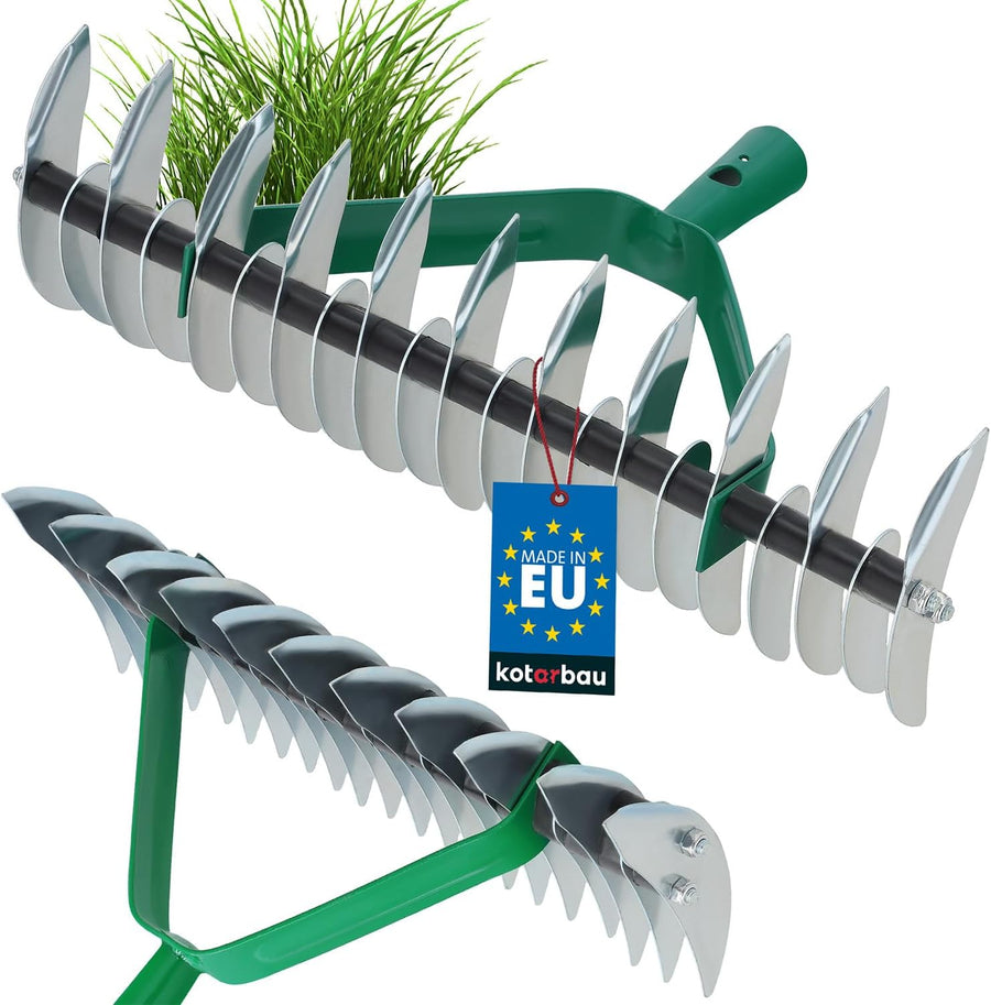 KOTARBAU® Schneidrechen 360 x 130 mm Rasenlüfter Kultivator Rasenbelüfter Rechen Handvertikutierer z