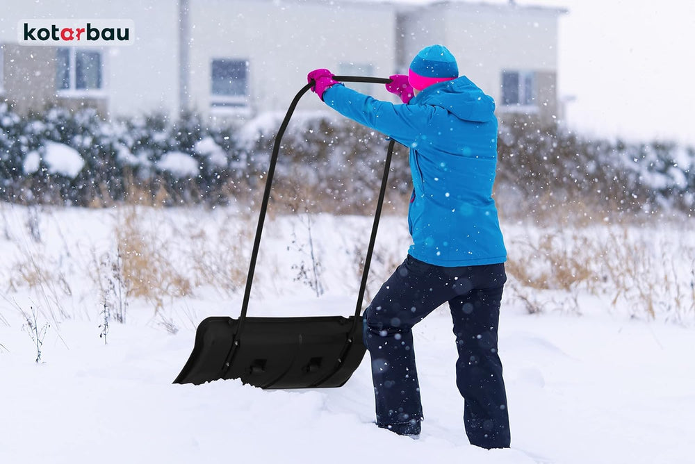 KOTARBAU® Satz Schneeschieber 80cm mit Rädern + Schneeschaufel 48 cm, Schneewanne mit Alu-Profilkant