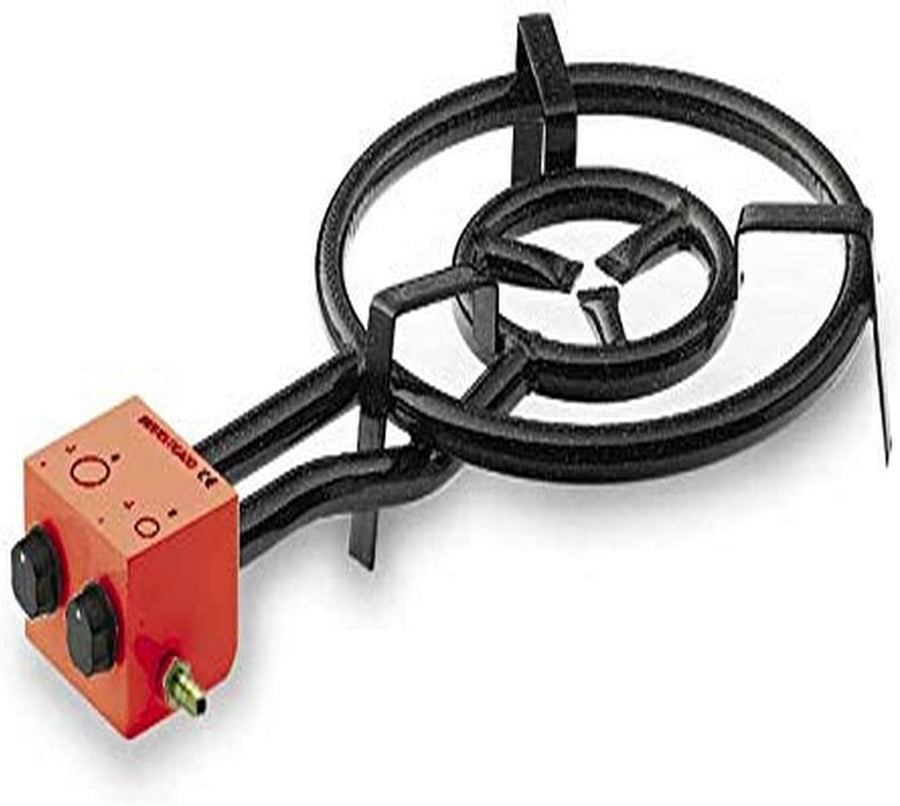 LACOR Paella-Pfanne, Butangas, 2 Brenner, 40 cm, Edelstahl, Schwarz