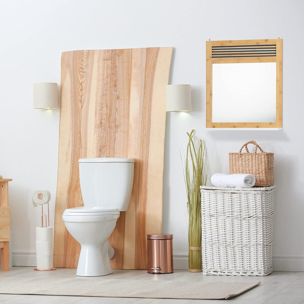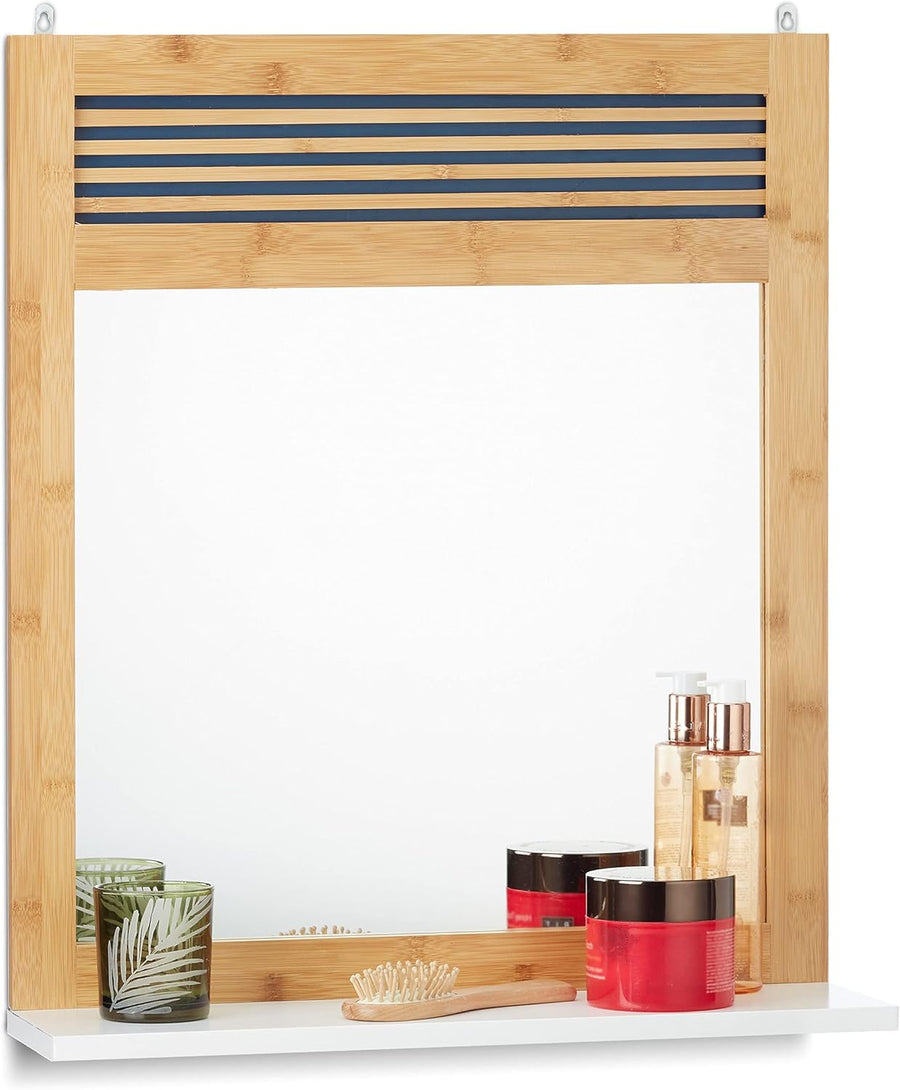 Relaxdays Badspiegel mit Ablage, verzierter Wandspiegel, Bambus Badezimmerspiegel HBT: 61 x 53 x 15