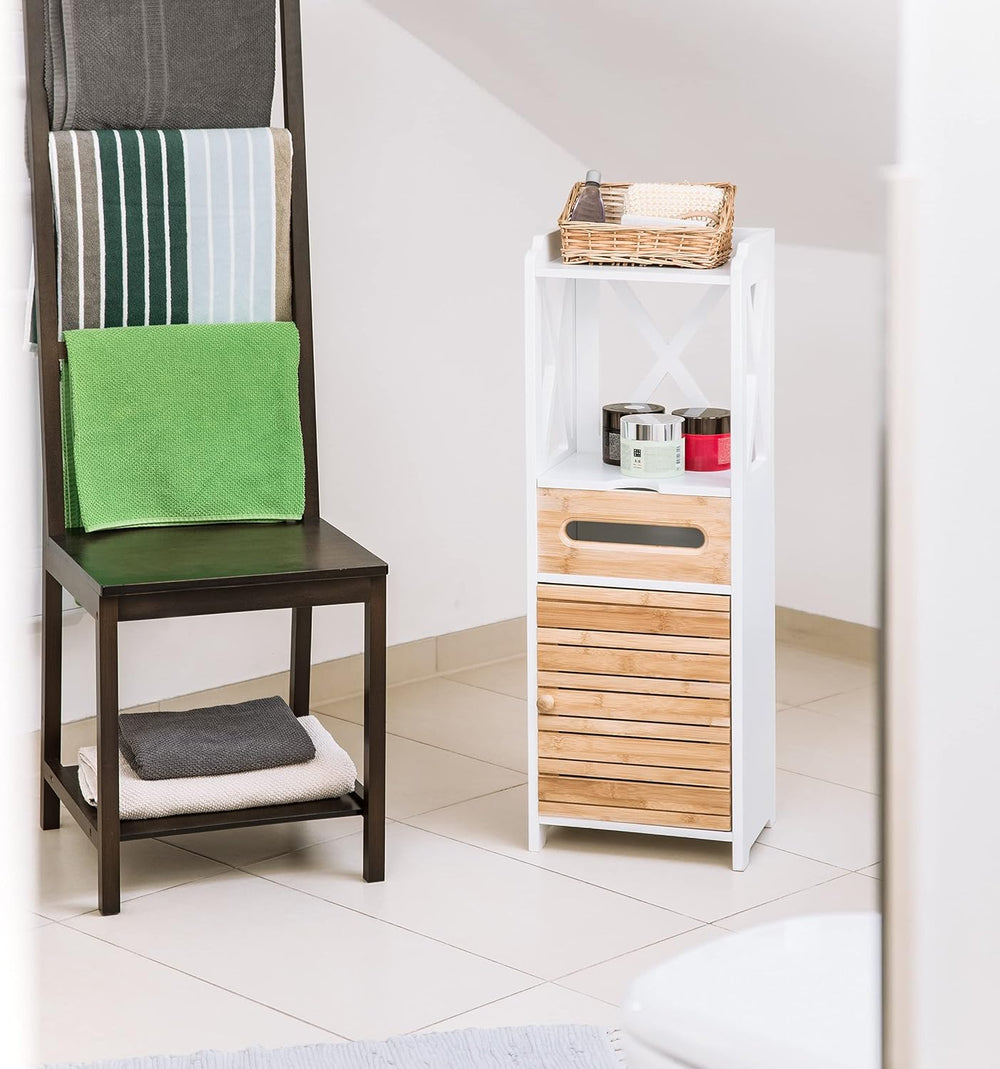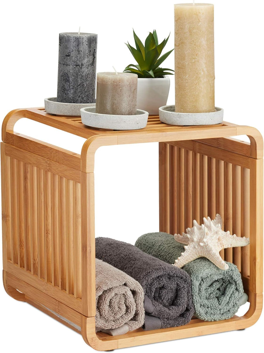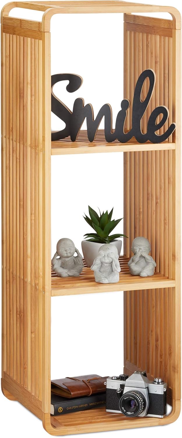 Relaxdays Bambus Regal, abgerundetes Standregal, schmales Badregal mit 2 Ablagen, quadratisch, HBT: