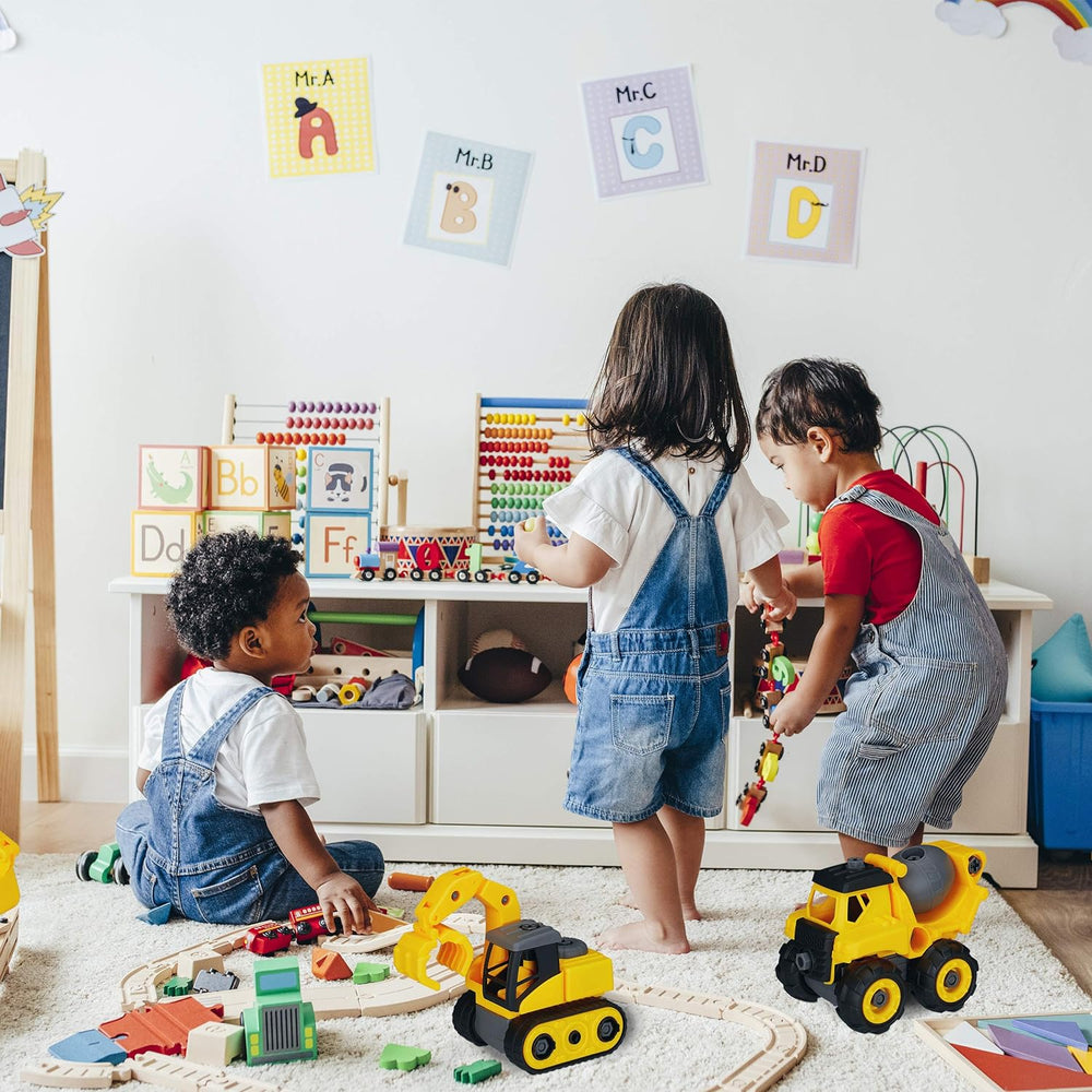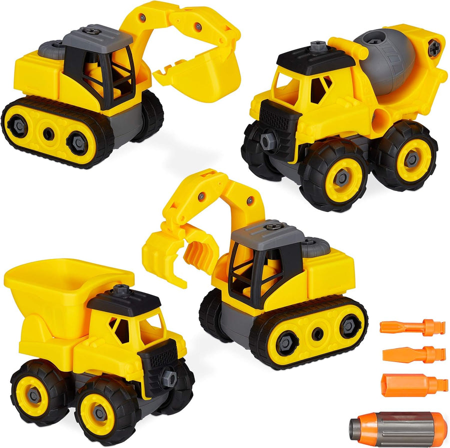 Relaxdays Baustellenfahrzeuge Kinder, Bagger Spielzeug im 4er Set, Schraubendreher mit 3 Aufsätzen,
