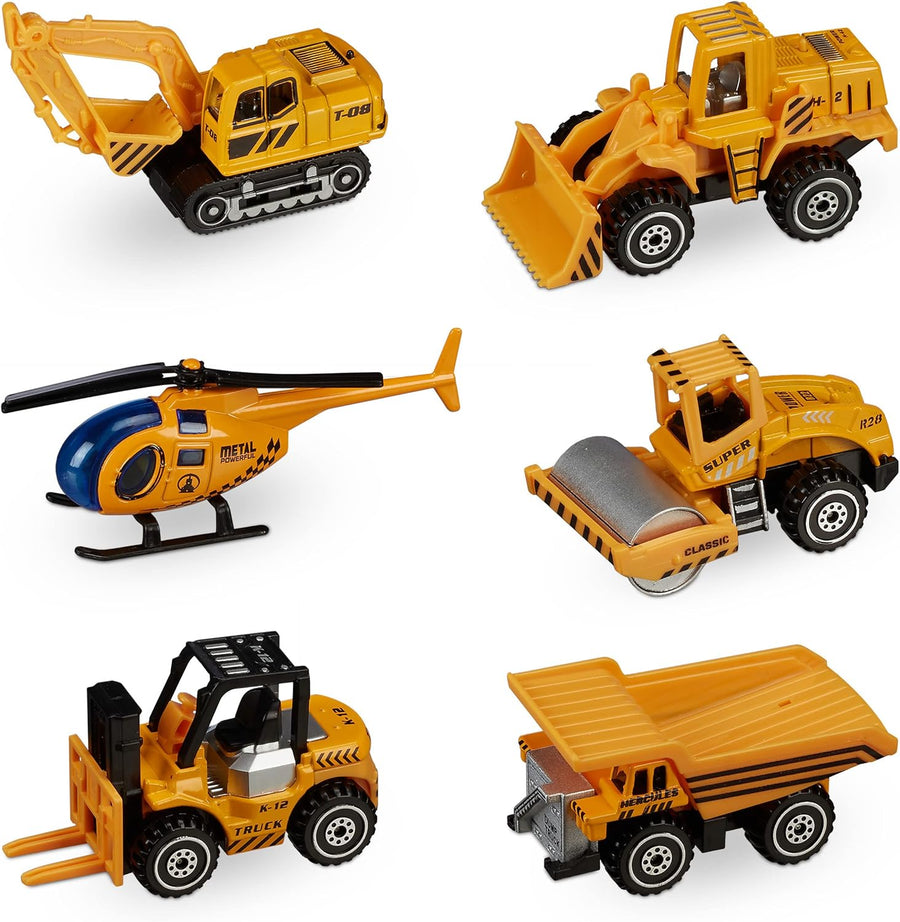 Relaxdays Baustellenfahrzeuge Kinder, 6er Set, Spielzeugautos, Mini Baustelle, ab 3 Jahre, Metallaut