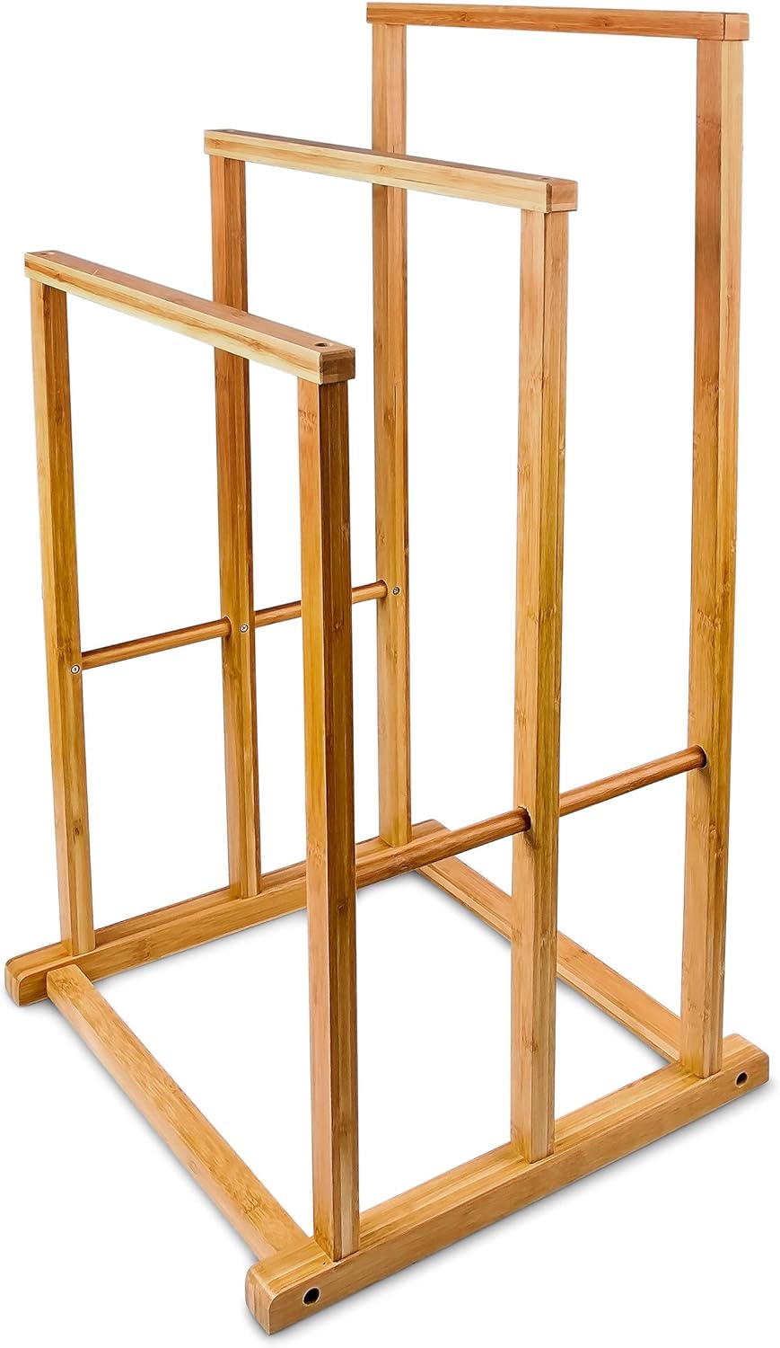 Relaxdays Bambus treppenförmiger Handtuchhalter mit 3 Handtuchstangen als Elegantes Badaccessoire fü