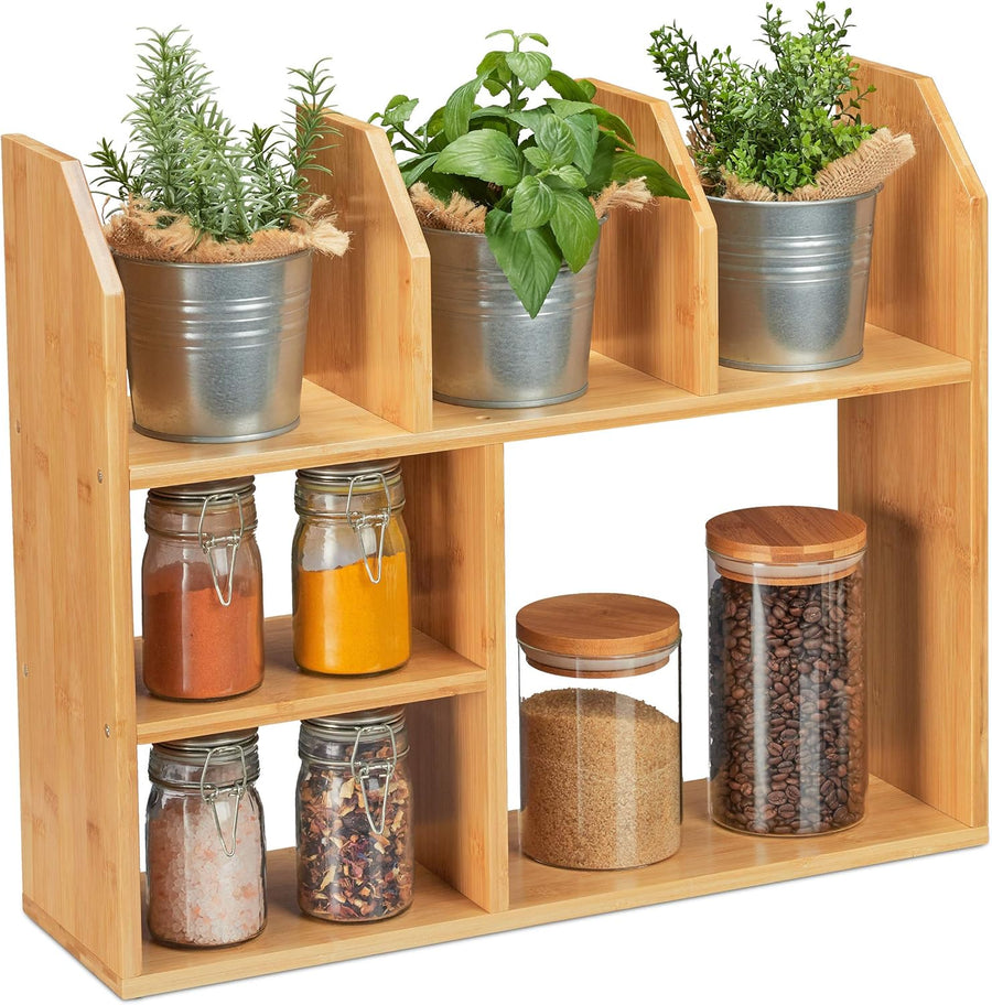 Relaxdays Bambusregal, 6 Fächer, HBT: 45,5 x 55 x 16 cm, stehend, für Küche, Bad & Wohnzimmer, Deko