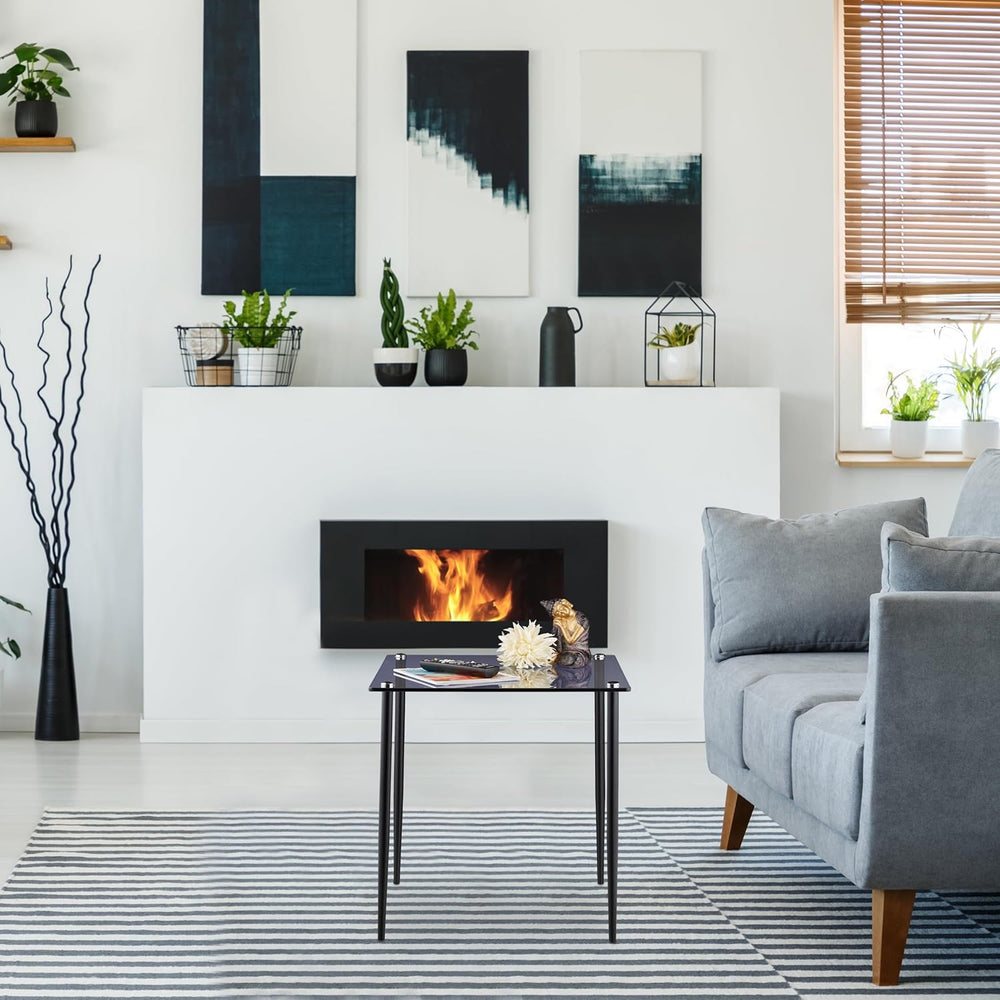 Relaxdays Beistelltisch Glas, Stahl, eckiger Wohnzimmertisch, HBT: 50 x 50 x 50 cm, moderner Glastis