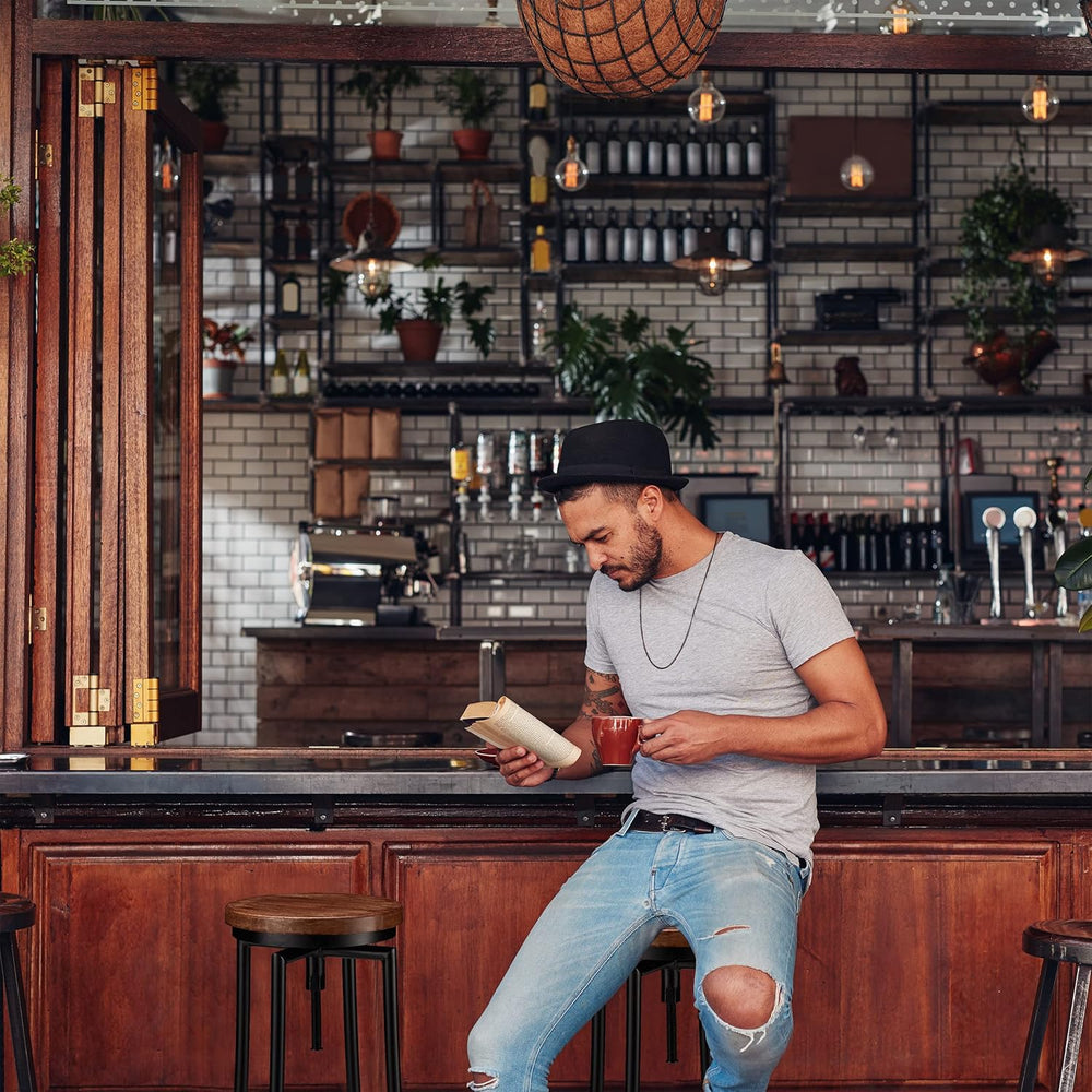 Relaxdays Barhocker industrial, Tresenhocker drehbar, hoher Vintage Hocker, höhenverstellbar bis 77,