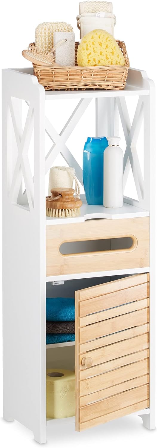 Relaxdays Beistellschrank klein mit 5 Ablagen, Mehrzweckschrank für Küche und Bad, schmaler Nische R