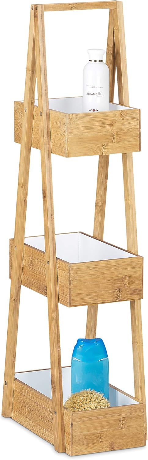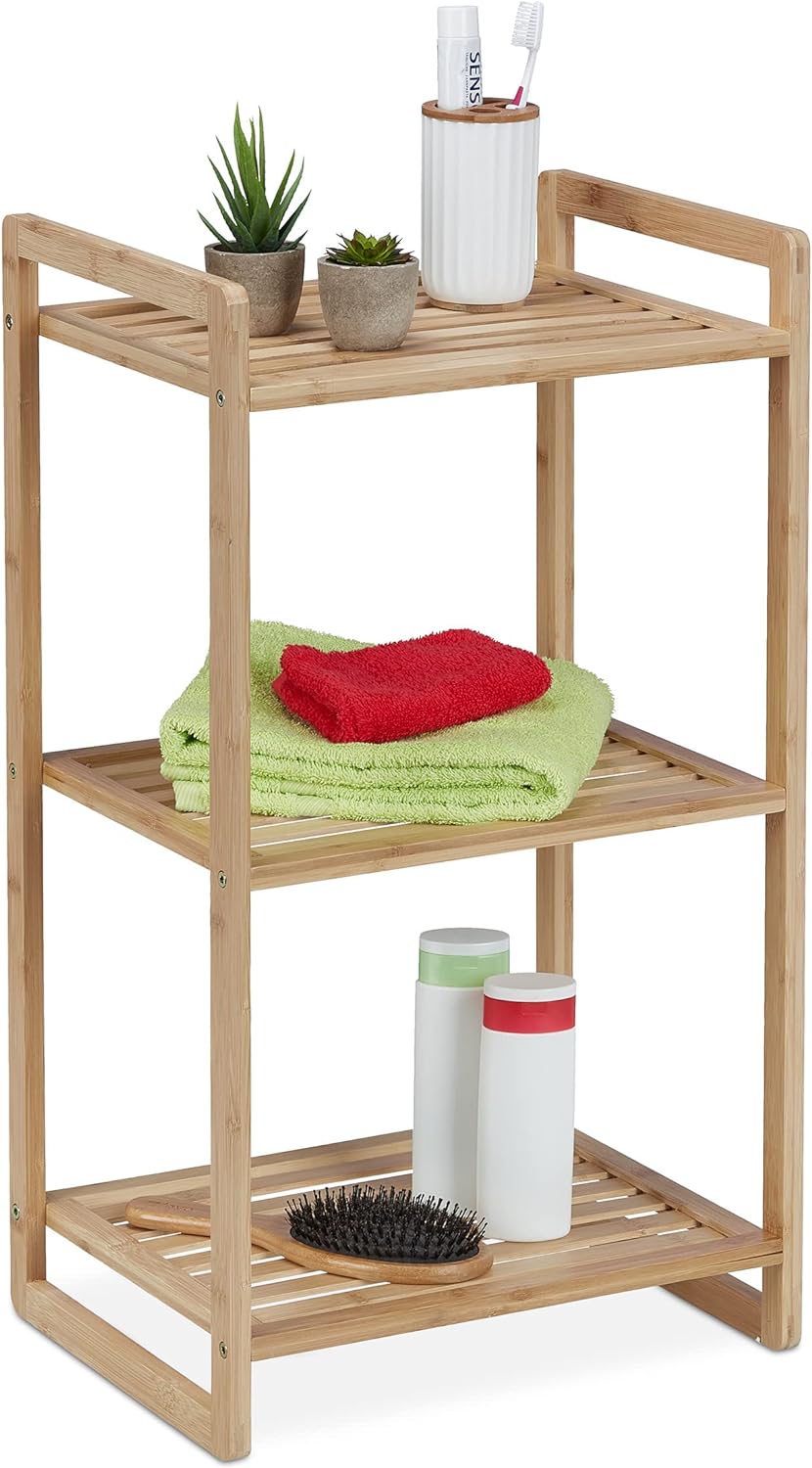 Relaxdays Bambusregal, HxBxT: 70 x 40 x 30 cm, Standregal mit 3 Ablagen, Bad, Küche, Wohnzimmer, fre