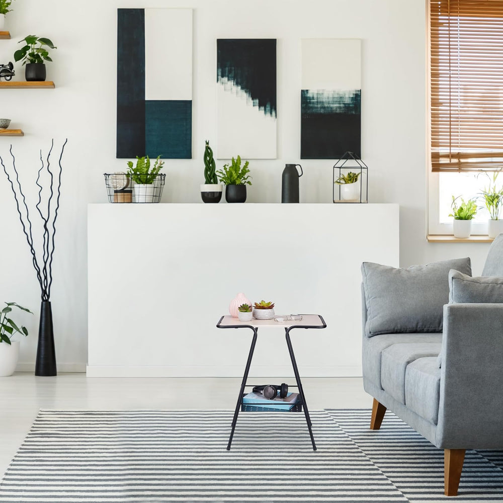 Relaxdays Beistelltisch mit Magazinablage, Metall, MDF, Tischplatte in Holzoptik, Beitisch HBT 55x45