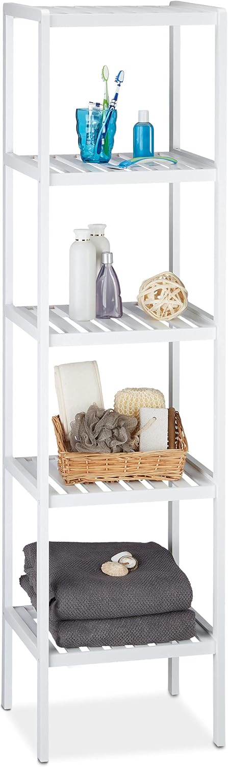 Relaxdays Bambus Regal, abgerundetes Standregal, schmales Badregal mit 4 Ablagen, quadratisch, HBT: