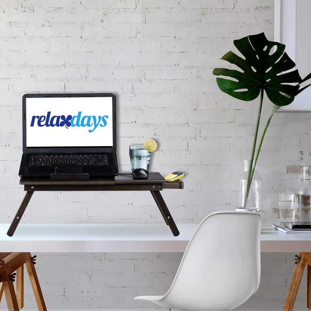 Relaxdays Bambus Laptoptisch, höhenverstellbarer Laptopständer für Bett und Sofa, mit Schublade, HBT
