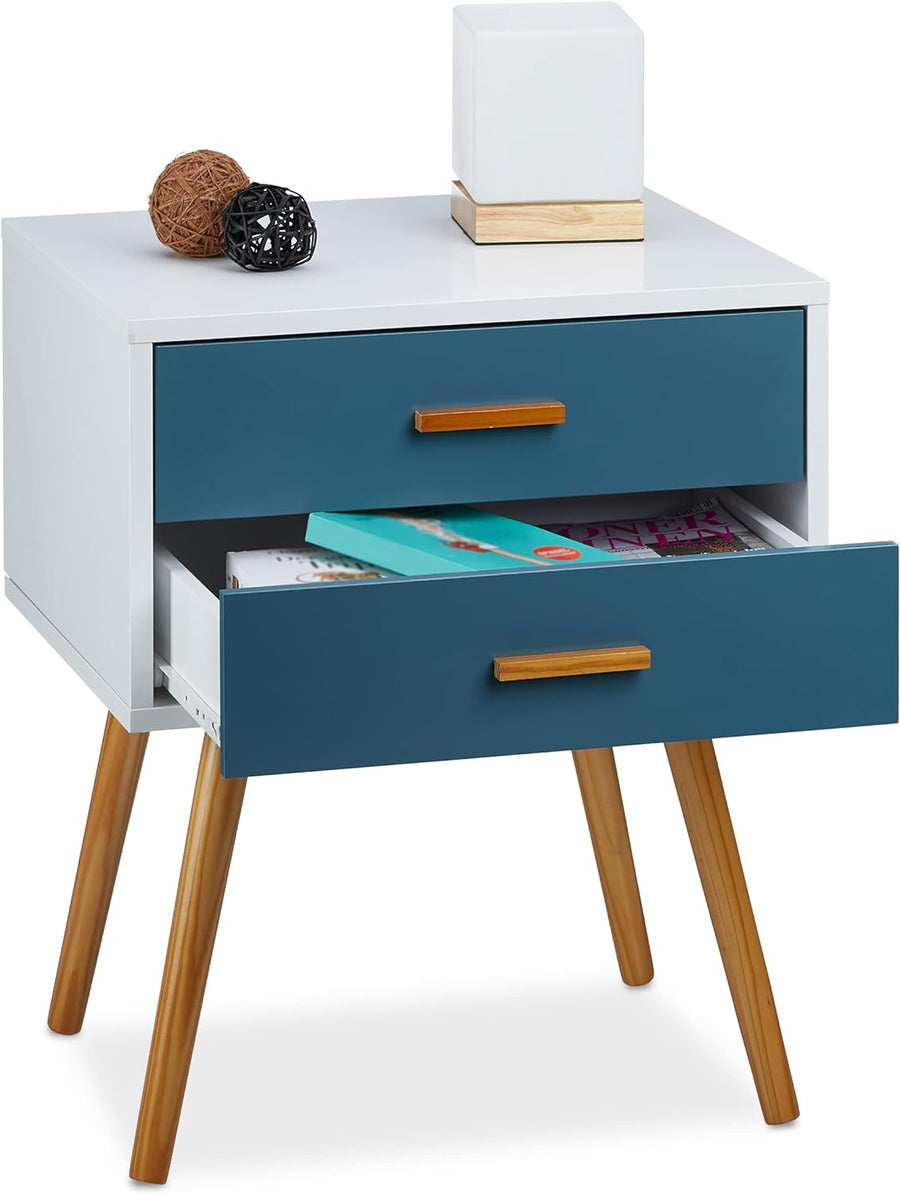 Relaxdays Beistellschrank Skandinavisches Design, 2 Schubladen, Retro HBT: 58 x 41 x 48 cm, matt lac