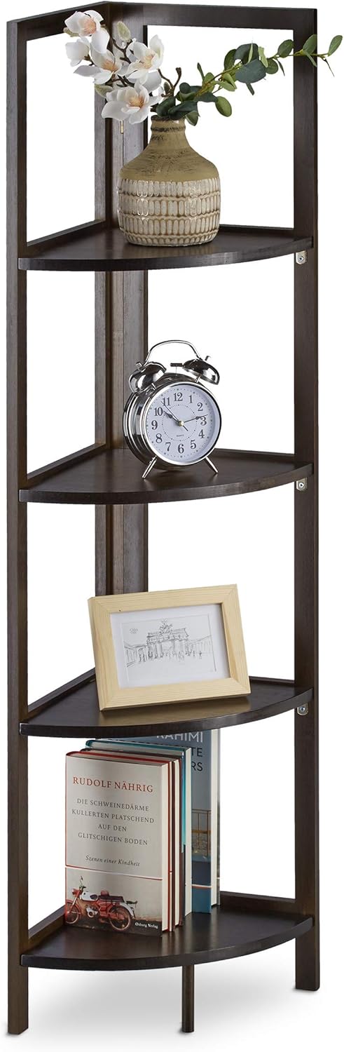 Relaxdays Bambus Eckregal, 4 halbrunde Ablagen, Regal klappbar, Standregal Bad, offen, HBT 120 x 28