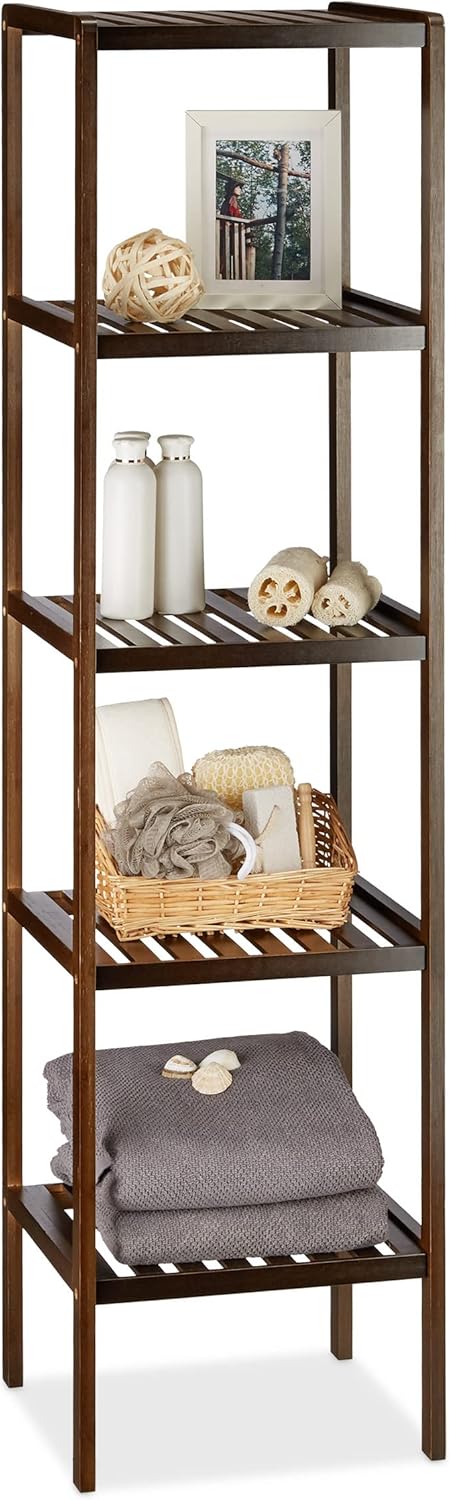 Relaxdays Bambus Badregal mit 5 Ablageflächen, HxBxT: 139,5 x 34,5 x 33 cm, hohes Standregal, Küchen