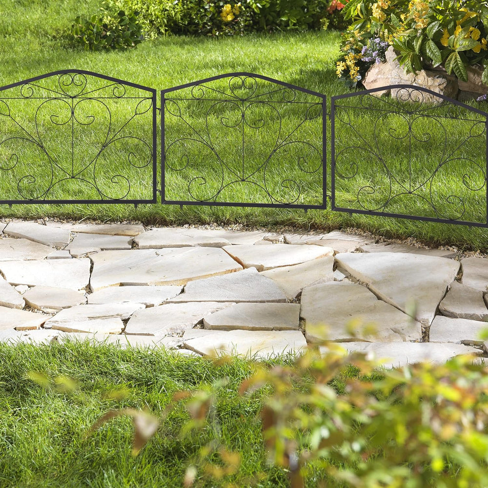 Relaxdays Beetzaun Metall, 6 Zaunelemente mit Verzierungen, HxB: 81 x 63 cm, Garten Beeteinfassung z