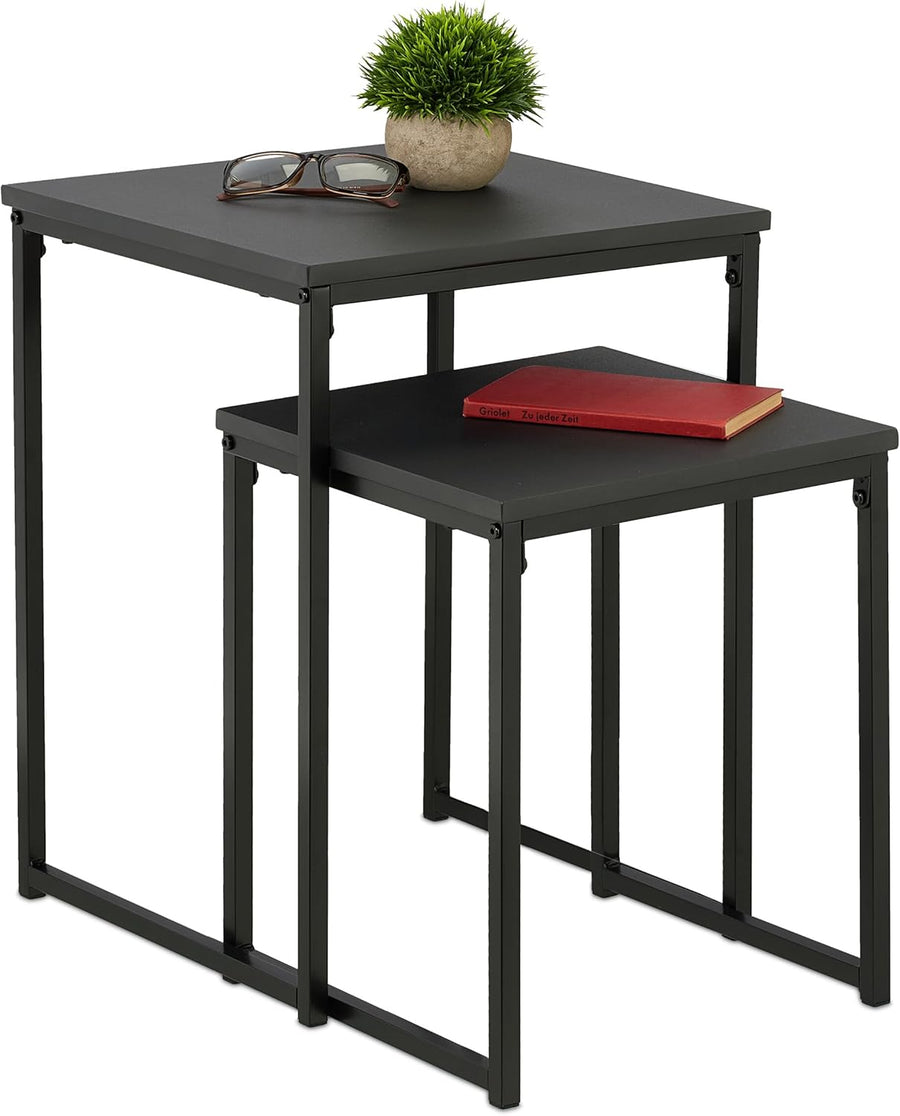 Relaxdays Beistelltisch 2er Set, stapelbar, Satztisch 2 Grössen, quadratisch, Metall, Wohnzimmer, De