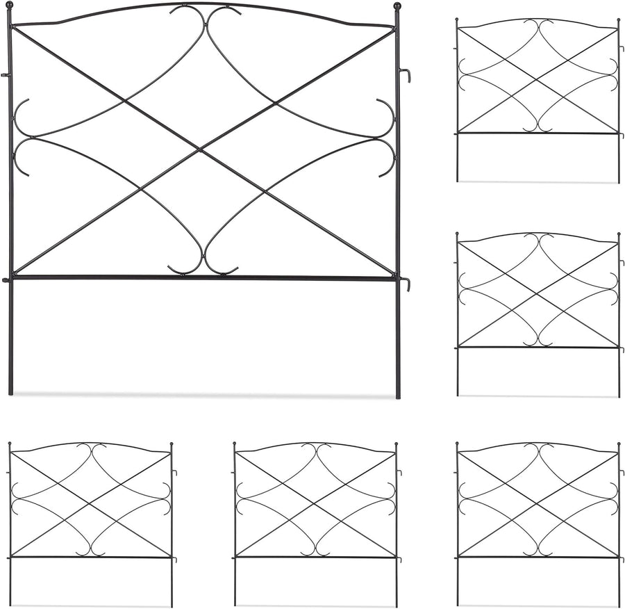 Relaxdays Beetzaun Metall, HxB: 81 x 38 cm, Garten Beeteinfassung zum Stecken, 6 Zaunelemente mit Ve