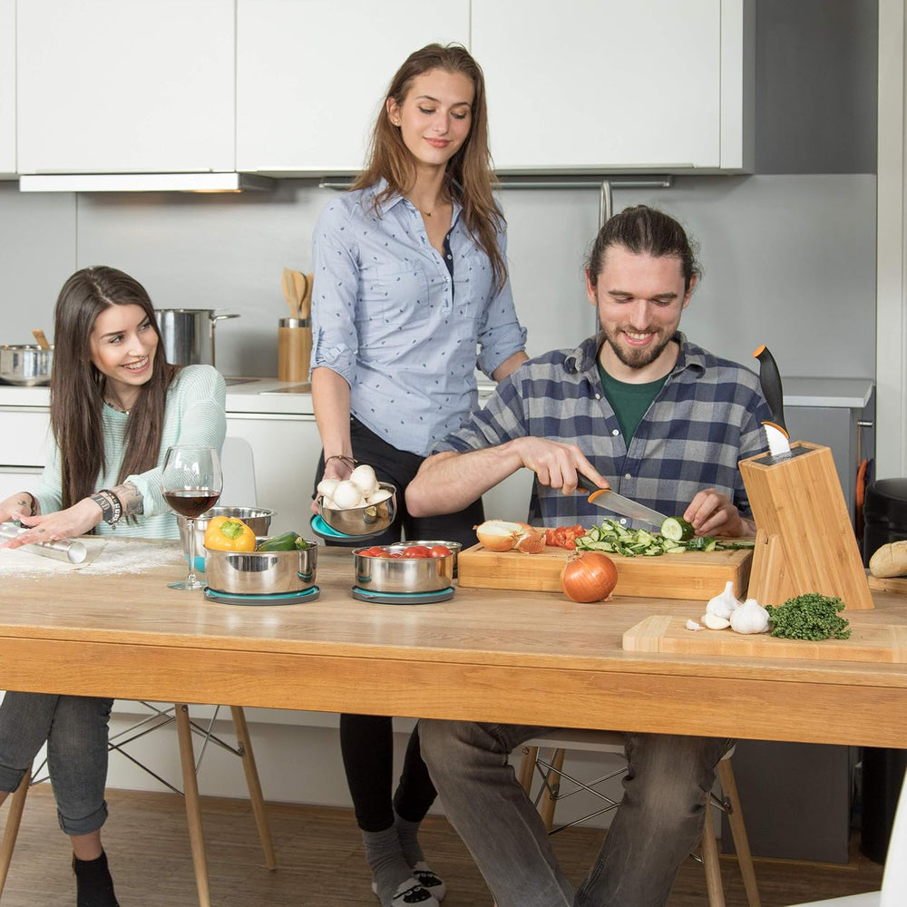 Relaxdays Bambus Messerblock mit Borsteneinsatz, Küchenblock für 6 Messer aller Art, unbestückter Ho