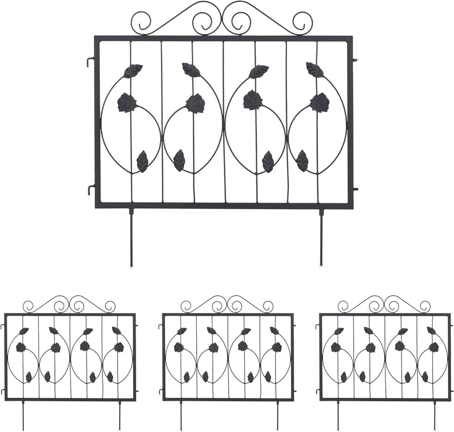 Relaxdays Beetzaun, je HxB: 60 x 60 cm, Metall, Garten Beeteinfassung zum Stecken, 4 dekorative Zaun
