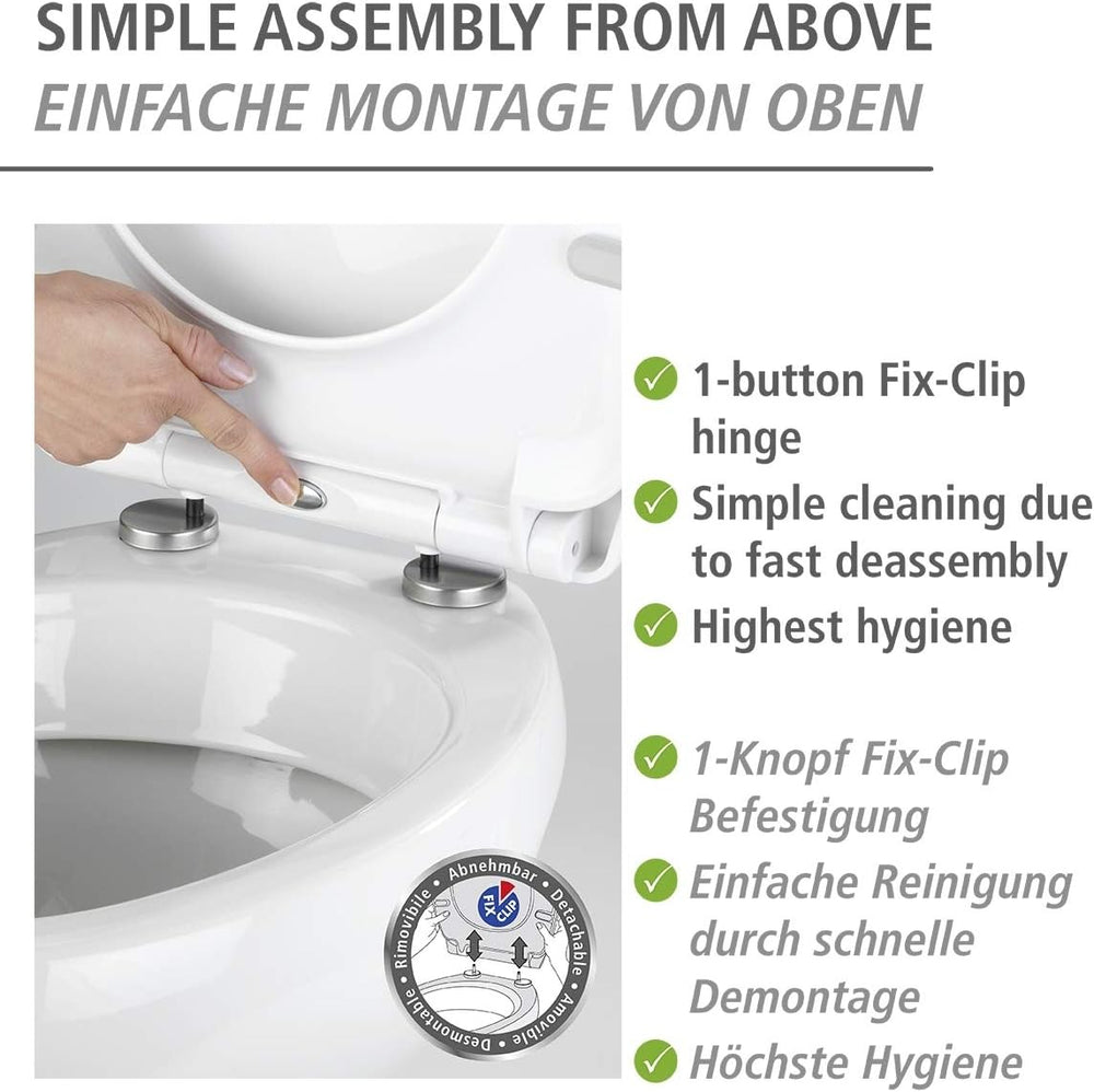 WENKO WC-Sitz Mira, Toilettensitz mit Absenkautomatik, WC-Deckel mit Fix-Clip Hygiene-Befestigung, a