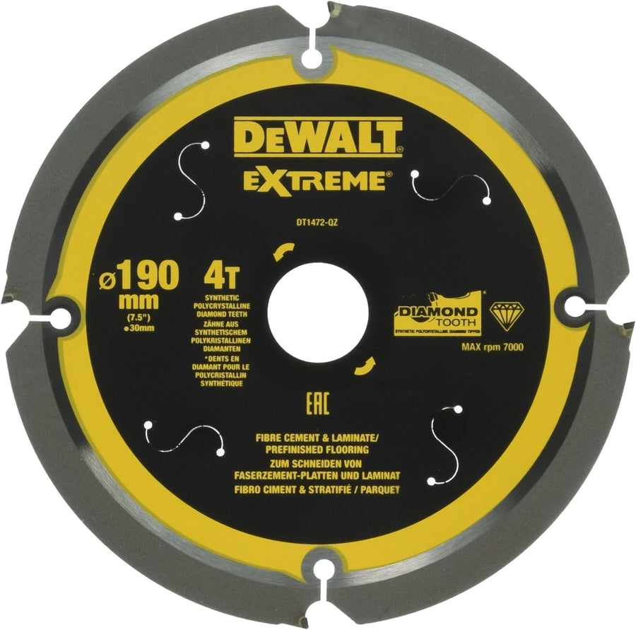 Dewalt Faserzement-Kreissägeblatt DT1472 (190/30 mm, 4 Zähne, 12°, speziell für Faserzement-Platten