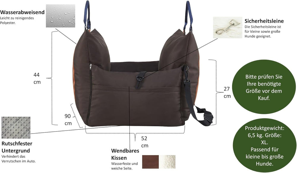 Hunde Autositz: Universal-3in-1 Lösung für vordere und hintere Sitze. Geeignet für kleine bis grosse