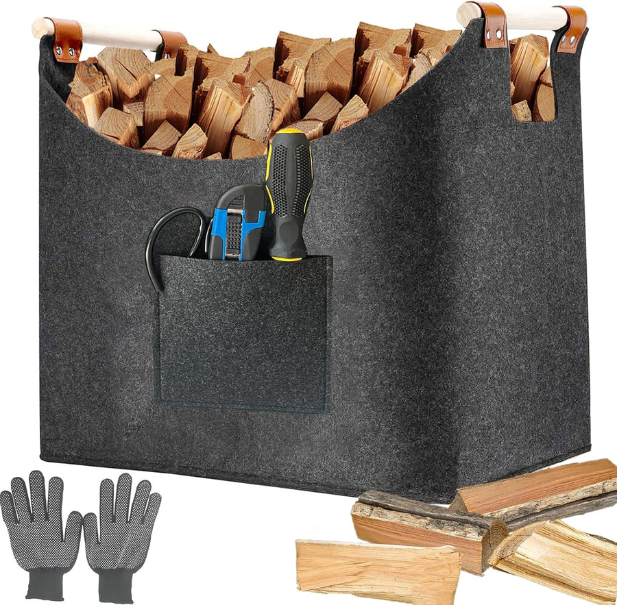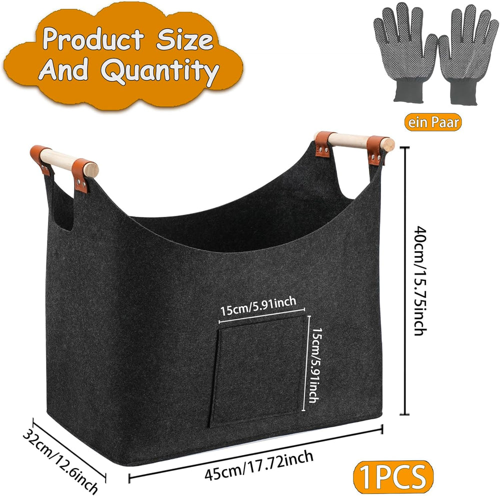 Holzkorb für Kaminholz, XL Kaminholzkorb mit 45 x 32 x 40 cm Holzkorb + ein Paar Handschuhe, Ideal f