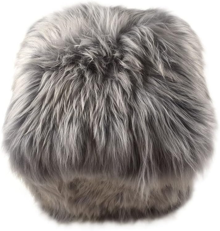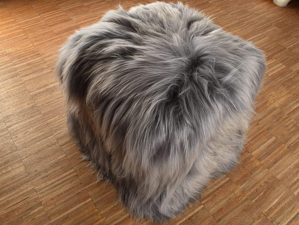 Hocker Ottomane Sitzwürfel Pouf aus Lammfell grau Holz Gestell 42 x 42 x 42 cm