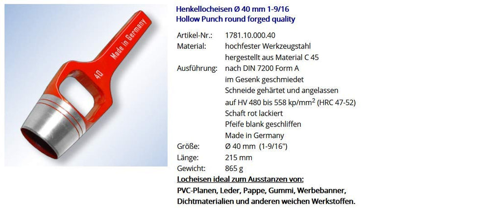 Henkellocheisen Ø 40 mm 1-9/16" rund