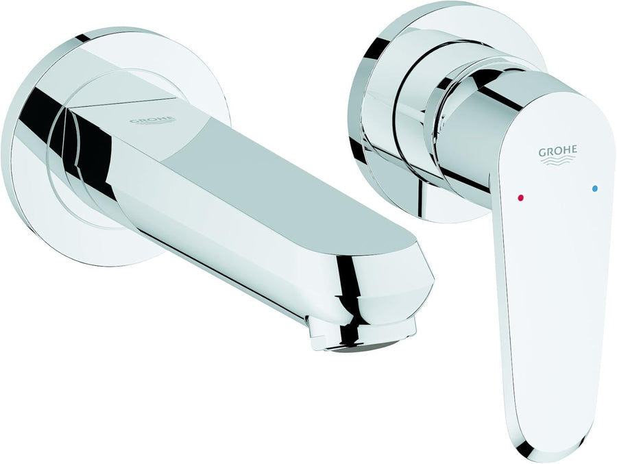 GROHE Eurocube - 2-Loch-Waschtischarmatur (für die Wandmontage, Bedienungshebel aus Metall, verstell
