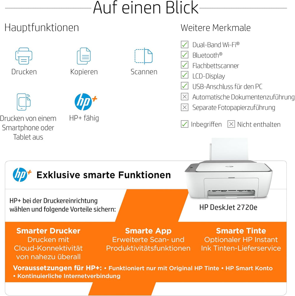 HP DeskJet 2720e Multifunktionsdrucker, 6 Monate gratis drucken mit HP Instant Ink inklusive, Drucke