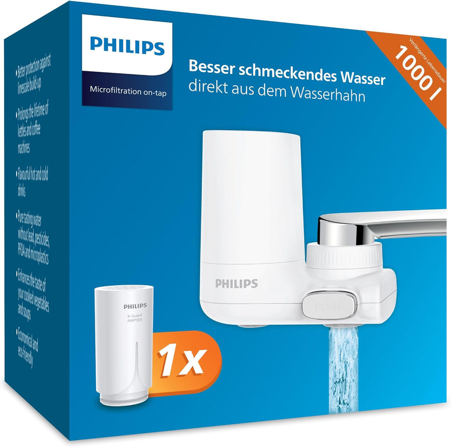 Philips Water AWP3703/10 Filter auf Wasserhahn, Weiss, Vertical X-Guard Microfiltration, Microfiltra