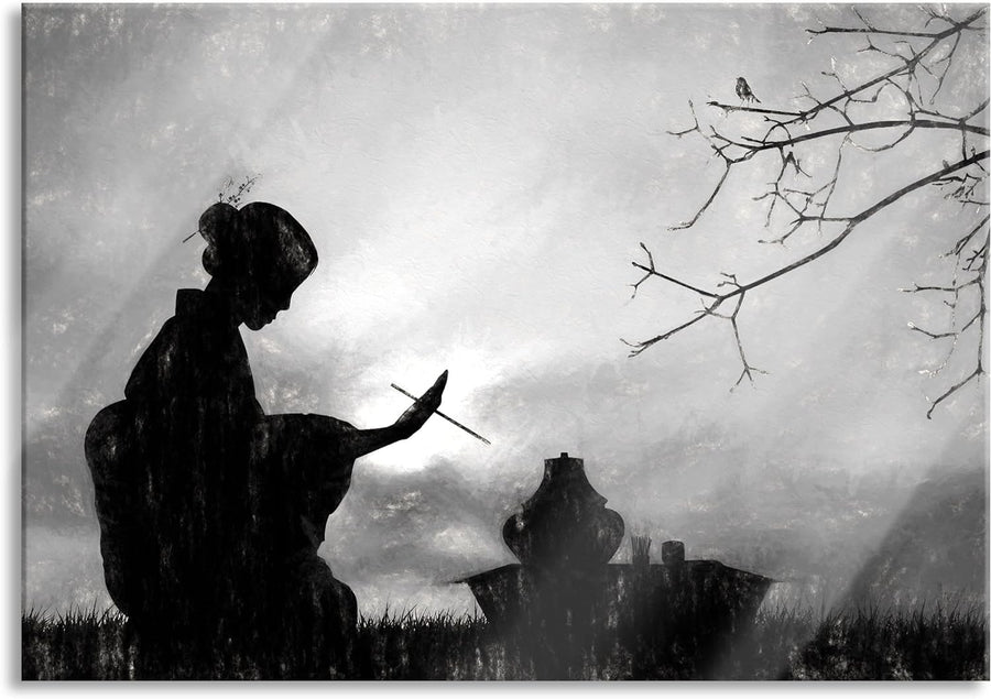 Pixxprint Glasbild | Wandbild aus Echtglas | Geisha | 60x40 cm | inkl. Aufhängung und Abstandshalter