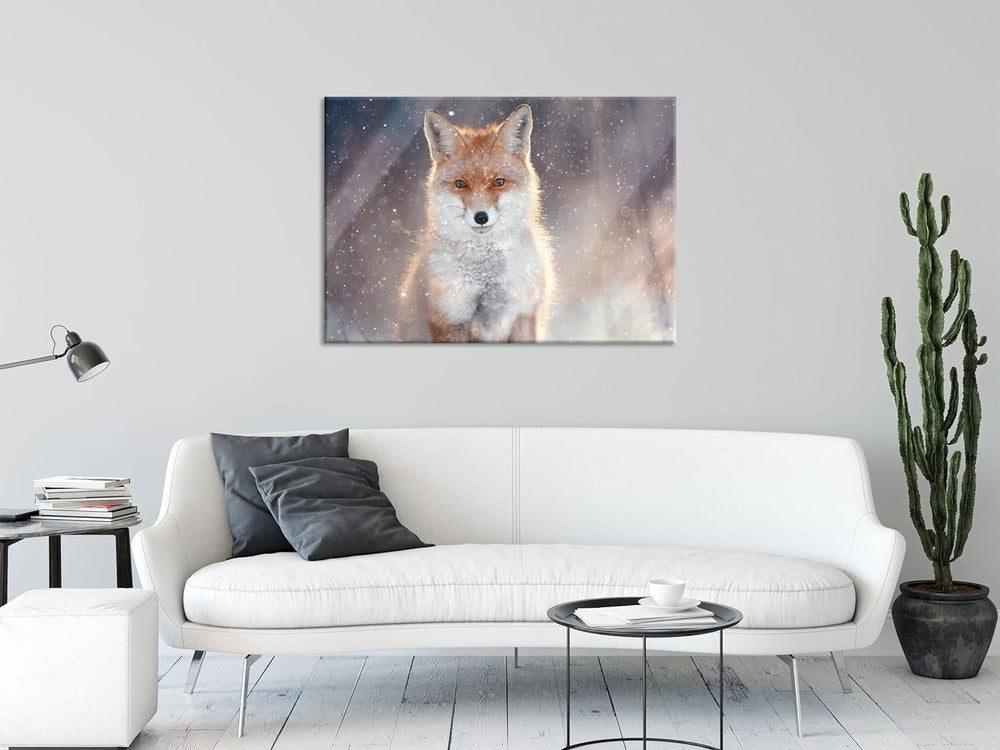 Pixxprint Glasbild | Wandbild aus Echtglas | Roter Fuchs im Winter | 80x60 cm | inkl. Aufhängung und