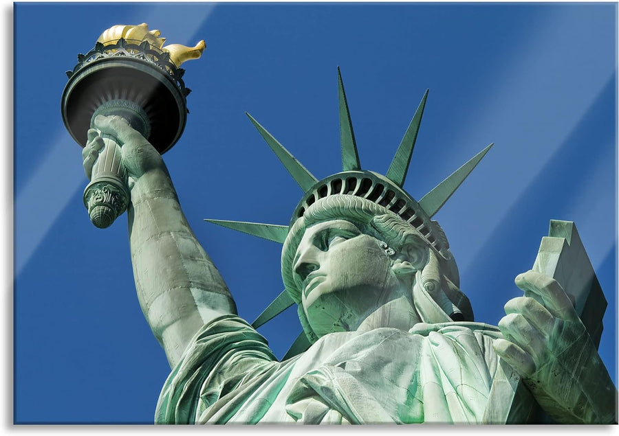Pixxprint Glasbild | Wandbild aus Echtglas | Freiheitsstatue in New York | 80x60 cm | inkl. Aufhängu