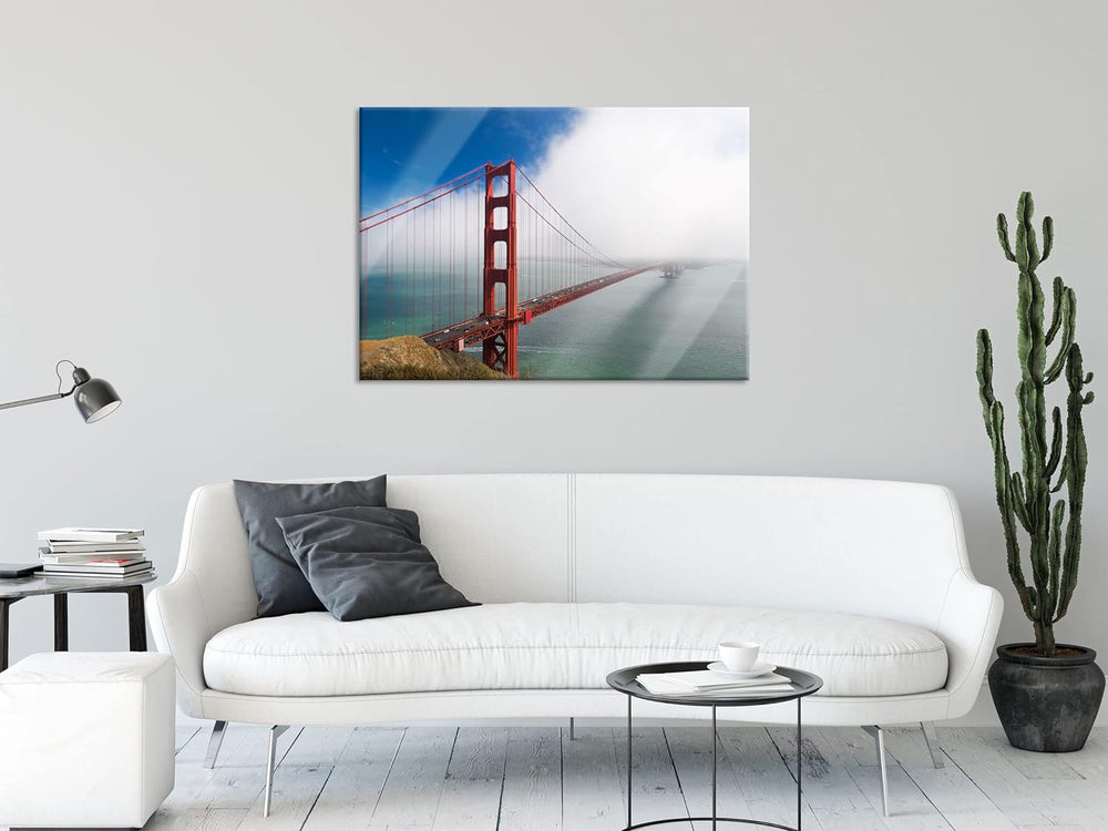 Pixxprint Glasbild | Wandbild aus Echtglas | Golden Gate Bridge San Francisco | 80x60 cm | inkl. Auf