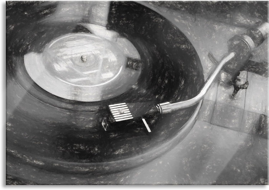 Pixxprint Glasbild | Wandbild aus Echtglas | Schallplatte | 80x60 cm | inkl. Aufhängung und Abstands