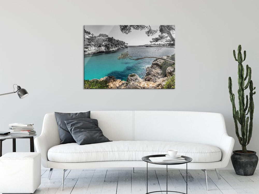 Pixxprint Glasbild | Wandbild aus Echtglas | Mallorca Bay Cove | 60x40 cm | inkl. Aufhängung und Abs
