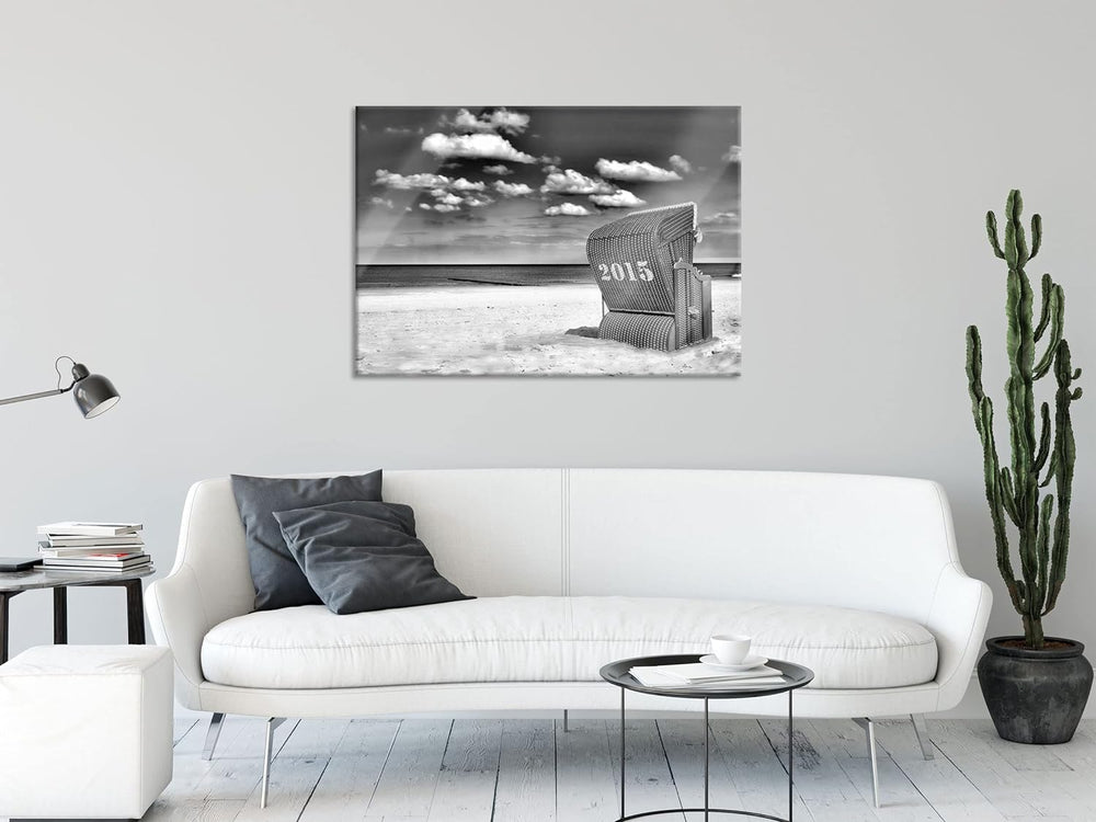 Pixxprint Glasbild | Wandbild aus Echtglas | Strandkorb an der Nordsee | 100x70 cm | inkl. Aufhängun