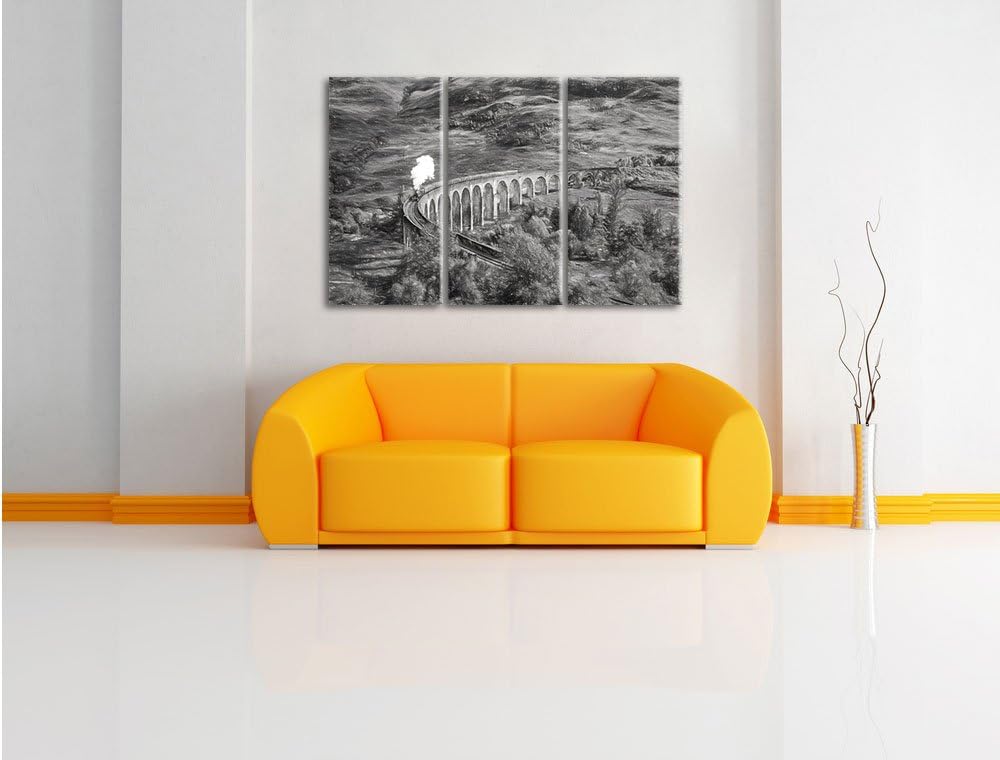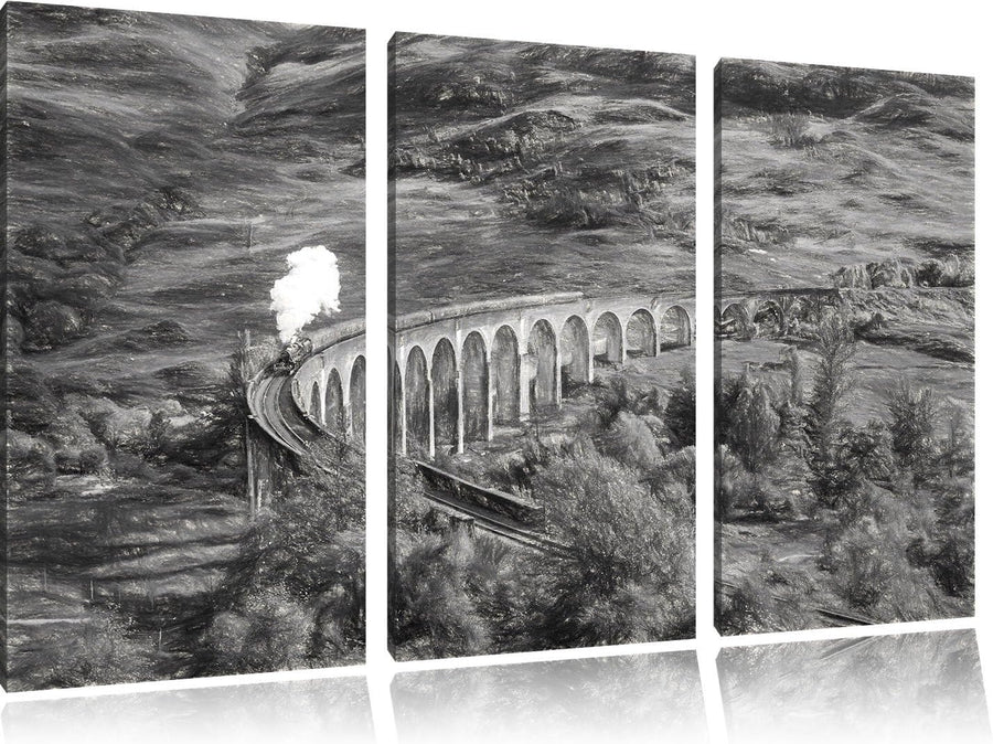 Pixxprint Glenfinnan Eisenbahnviadukt in Schottland Kunst Kohle Effekt 3-Teiler Leinwandbild 120x80