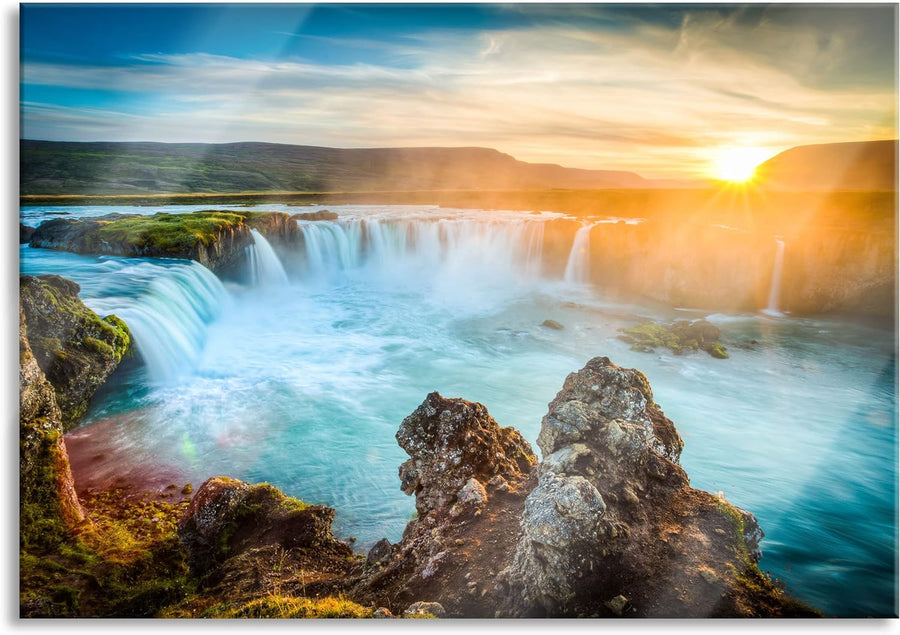 Pixxprint Glasbild | Wandbild aus Echtglas | Wasserfall | 60x40 cm | inkl. Aufhängung und Abstandsha